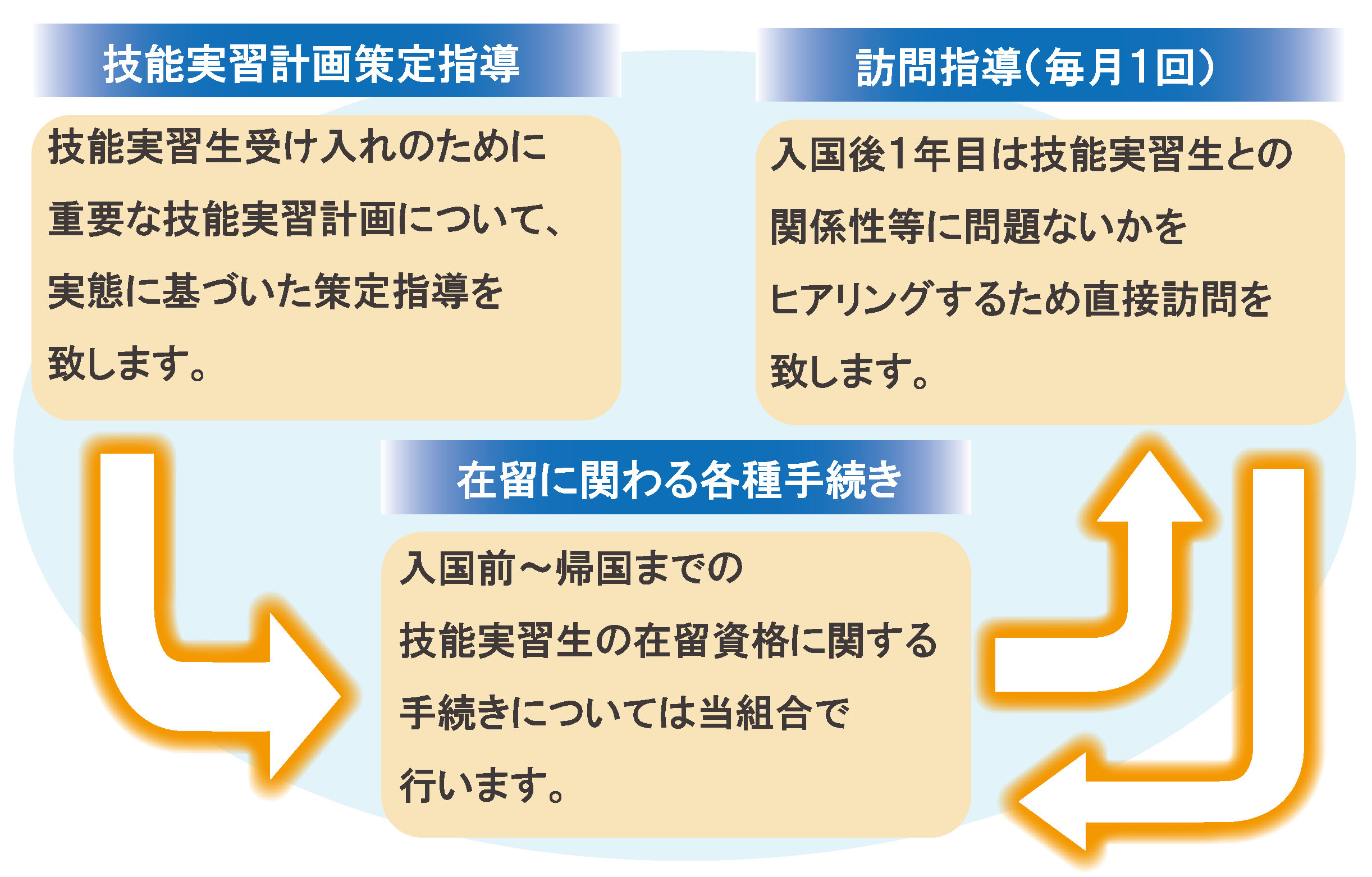 技能実習参加の目的や知識、帰国後の計画を聞き、意欲を確認します。