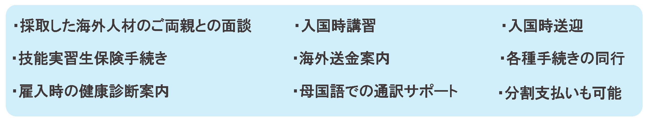 技能実習に影響する病気が無いかを日本レベルの健康診断で調べます。